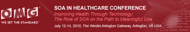 MONDAY July 12, 2010 EXECUTIVE SUMMIT PLENARY (Single Track) | | | | SESSION 1 - 1000 - 1045 | | 1000 - 1045 | | | 1045 - 1115 | Morning Refreshments | | | SESSION 2 - 1115 - 1245 | | 1115 - 1200 | | | 1200 - 1245 | | | 1245 - 1330 | LUNCH | | | SESSION 3 - 1330 - 1500 | | | FUNCTIONAL TRACK | INTEROPERABILITY TRACK | "HOW TO" TRACK | | 1330 - 1415 | | | | | 1415 - 1500 | | | | | | 1500 - 1530 | Afternoon Refreshments | | | SESSION 4 - 1530 - 1700 | | | FUNCTIONAL TRACK | INTEROPERABILITY TRACK | "HOW TO" TRACK | | 1530 - 1615 | | | | | 1615 - 1700 | | Immunization Management Case Study | | | Stephen Hufnagel Health IT Architect, DOD Military Health SystemNancy Orvis DOD Military Health System Alean Kirnak, Software Partners LLC John Ritter College of American Pathologists | | | | | | TUESDAY, July 13, 2010 | | 0900 - 0915 | | Welcome - Opening Remarks | | | Richard Mark Soley, PhD Chairman & CEO Object Management Group | | | 0915 - 1000 | | | | SESSION 1 - 1000 - 1045 | | 1000 - 1045 | | | 1030 | Exhibit Area Opens | | 1045 - 1115 | Morning Refreshments in Exhibit Area | | | SESSION 2 - 1115 - 1245 | | | FUNCTIONAL TRACK | HEALTHCARE INFORMATION EXCHANGE (HIE) TRACK | TECHNICAL TRACK | | 1115 - 1200 | | | | | 1200 - 1245 | | | | | 1245 - 1330 | LUNCH | | | SESSION 3 - 1330 - 1500 | | | ARCHITECTURE TRACK | HEALTHCARE INFORMATION EXCHANGE (HIE) TRACK | TECHNICAL TRACK | | 1330 - 1415 | | Enabling Technologies for Healthcare Transformation & SOA | | | Sridhar Iyengar Distinguished Engineer IBM Henry Chang, Ph.D. Collaboratory Director IBM Research Collaboratory for Intelligent Living- Taiwan Healthcare Transformation T.J. Watson Research Center Chalapathy Neti, IBM Research, USA Shahram Ebadollahi IBM Research, USA | | | | | 1415 - 1500 | | | | | 1500 - 1530 | Afternoon Refreshments in Exhibit Area | | | SESSION 4 - 1530 - 1700 | | | ARCHITECTURE TRACK | HIE PANEL DISCUSSION | | 1530 - 1615 | | | | 1615 - 1700 | | | | 1800 - 2000 | Conference Reception in Exhibit Area | | | WEDNESDAY, July 14, 2010 | | 0900 - 0915 | | Welcome - Opening Remarks | | | Kenneth Rubin Chief Architect Federal Healthcare Portfolio HP | | | 0915 - 1000 | | | | SESSION 1 - 1000 - 1045 | | 1000 - 1045 | | | 1045 - 1115 | Morning Refreshments | | | SESSION 2 - 1115 - 1245 | | 1115 - 1200 | | | 1200 - 1245 | | | 1245 - 1330 | LUNCH | | | SESSION 3 - 1330 - 1500 | | | FUNCTIONAL TRACK | TECHNICAL TRACK | CASE STUDY TRACK | | 1330 - 1415 | | | | | 1415 - 1500 | | | | | 1500 - 1530 | Afternoon Refreshments | | | SESSION 4 - 1530 - 1700 | | | FUNCTIONAL TRACK | TECHNICAL TRACK | CASE STUDY TRACK | | 1530 - 1615 | | Panel Discussion: Institutional Readiness and Organizational Change | | | Moderator: Kenneth Rubin Chief Architect Federal Healthcare Portfolio HP Panelists: Dr. Robert O'Hara Chief, Clinical Informatics Veterans Health Administration The Honorable James B. Peake, M.D. Lieutenant General, USA (Ret) | | | | | 1615 - 1700 | | | | |